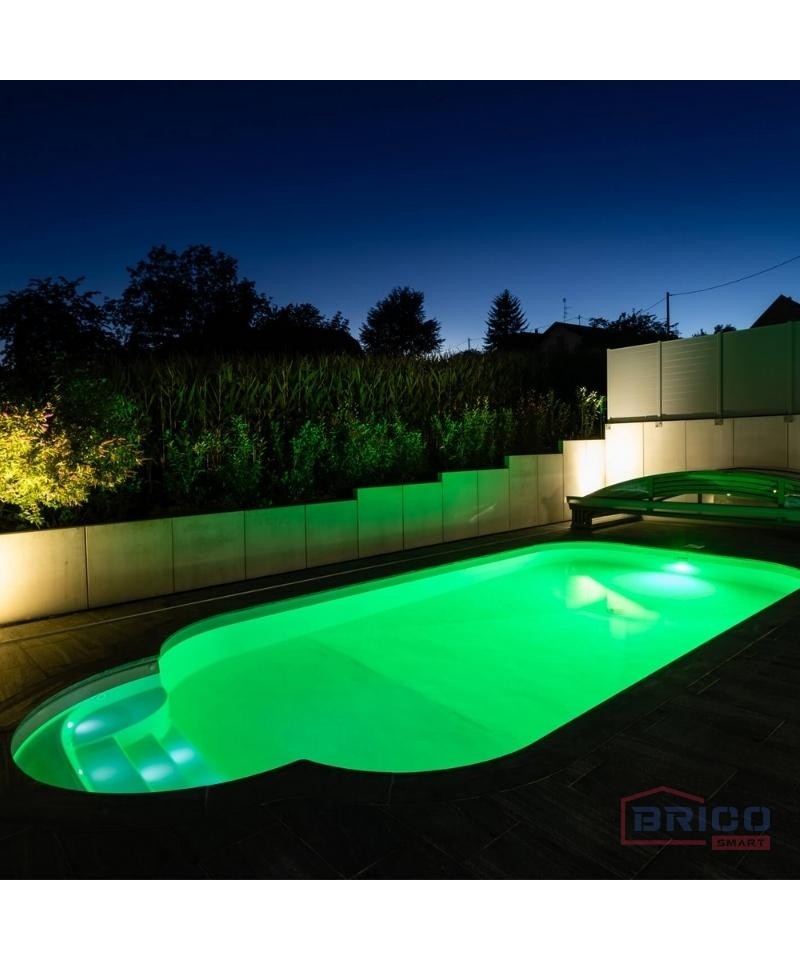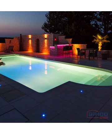 Eclairage à LED pour les piscines hors-sol. Il se fixe directement sur la buse de refoulement de la piscine en quelques instants.