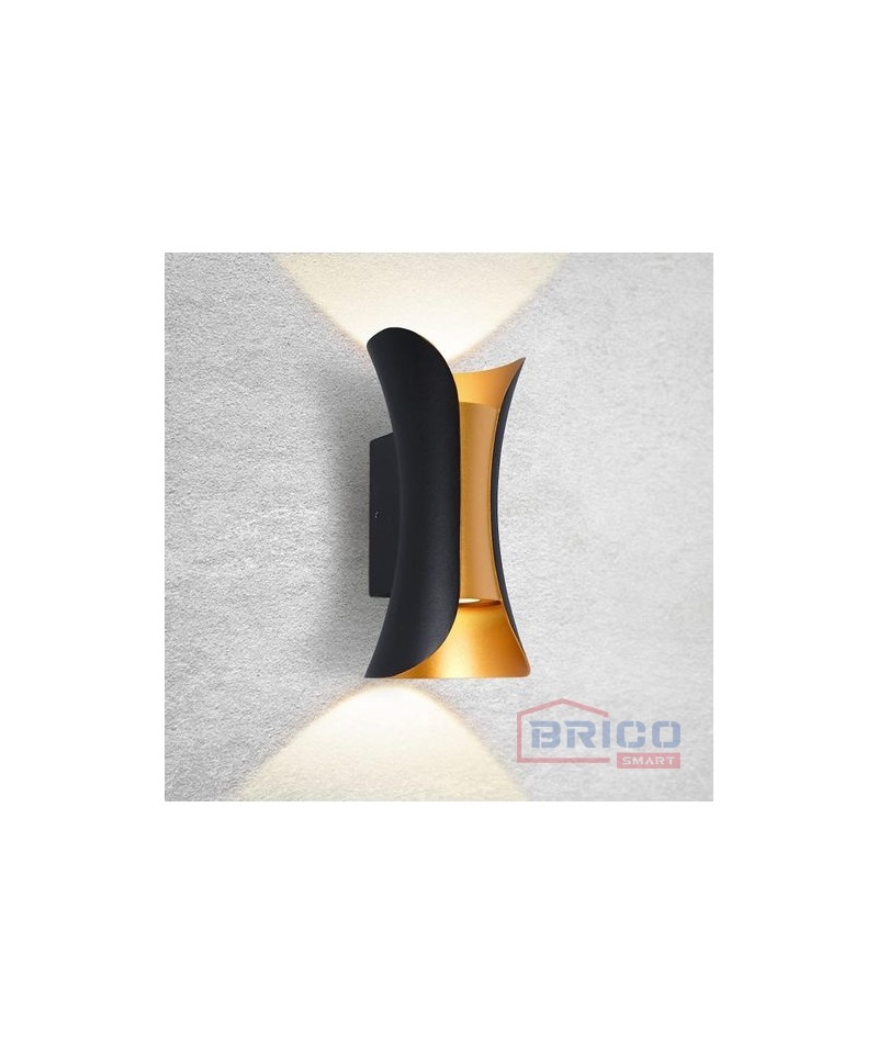 Applique murale Led design en noire et dorée, pratique pour mettre en valeur vos extérieurs.